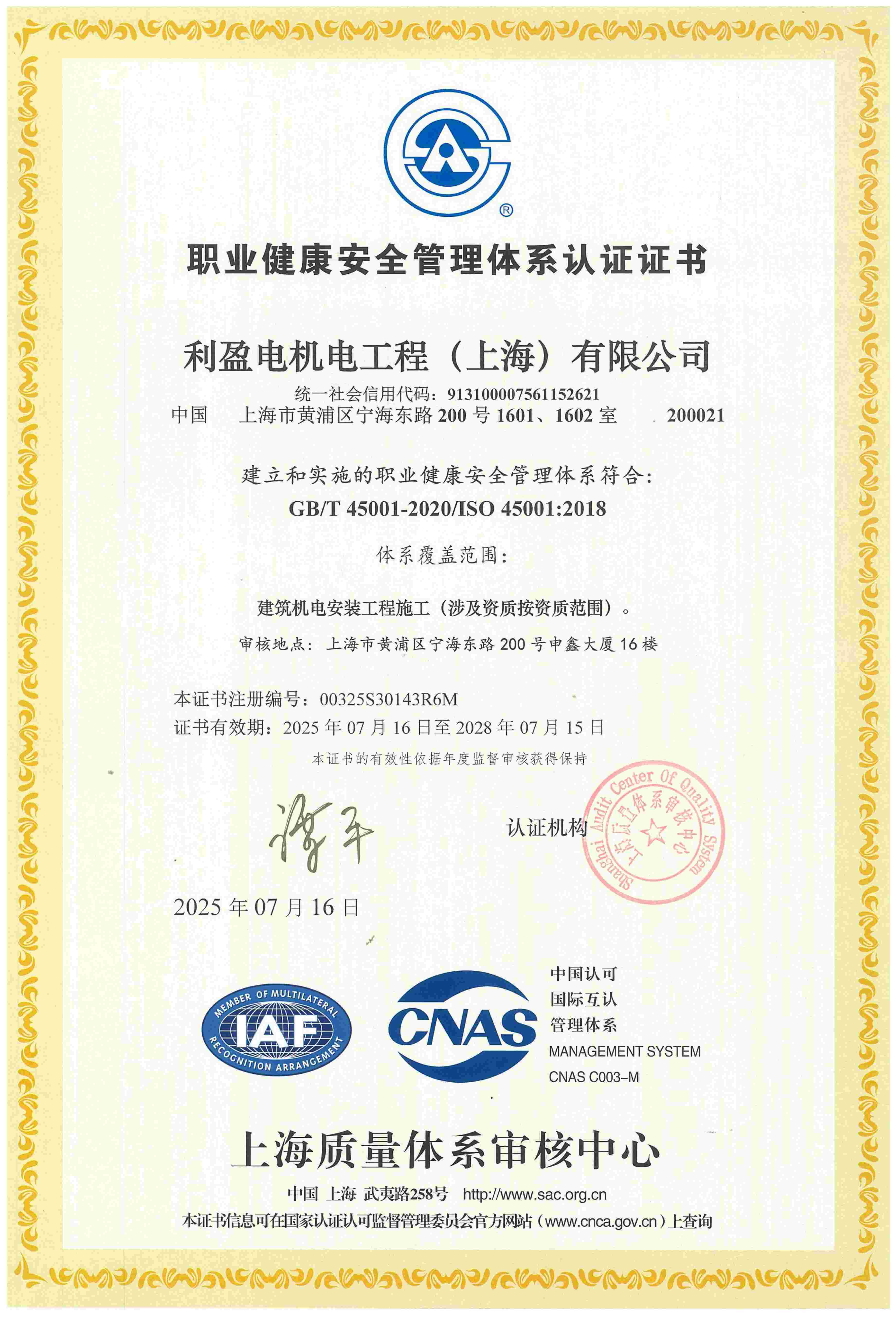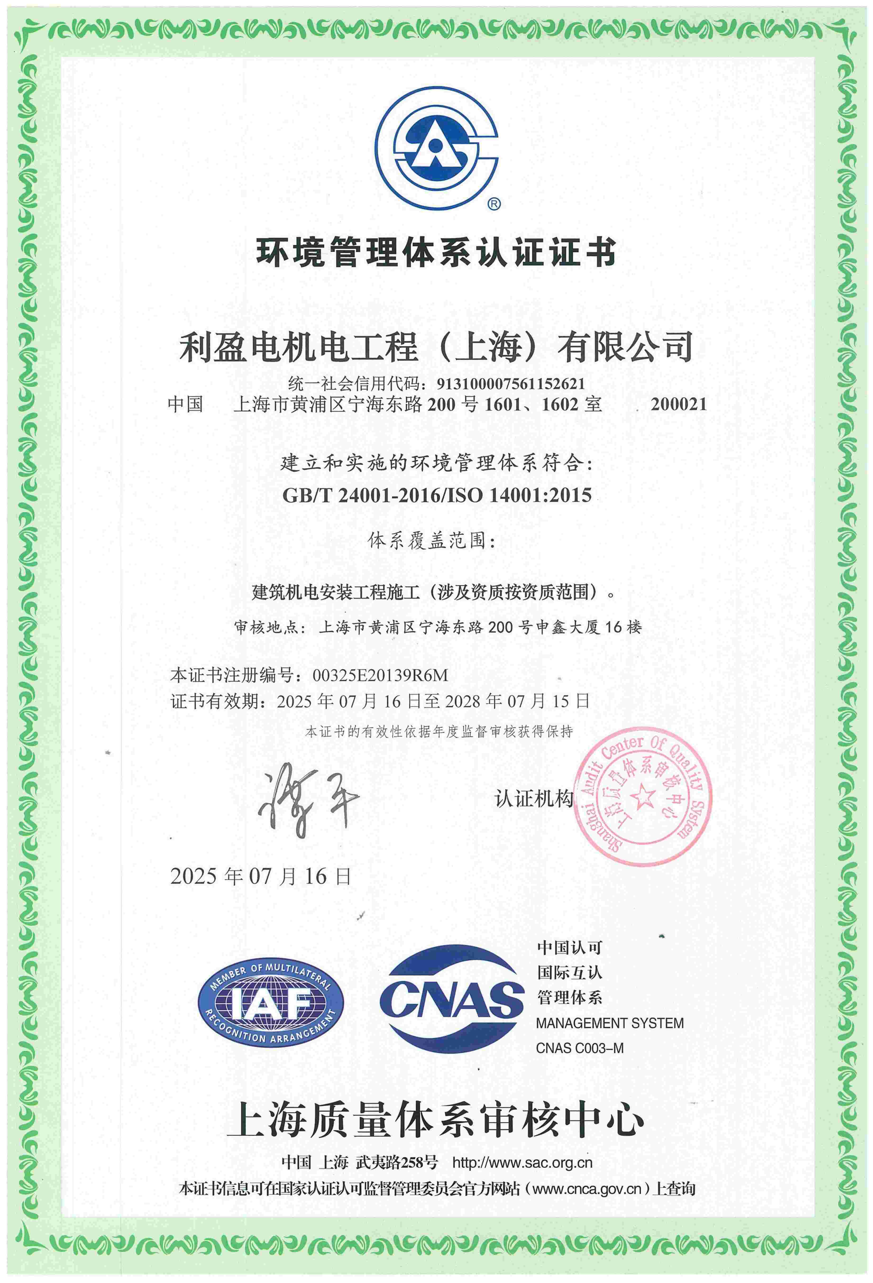 管理体系认证证书