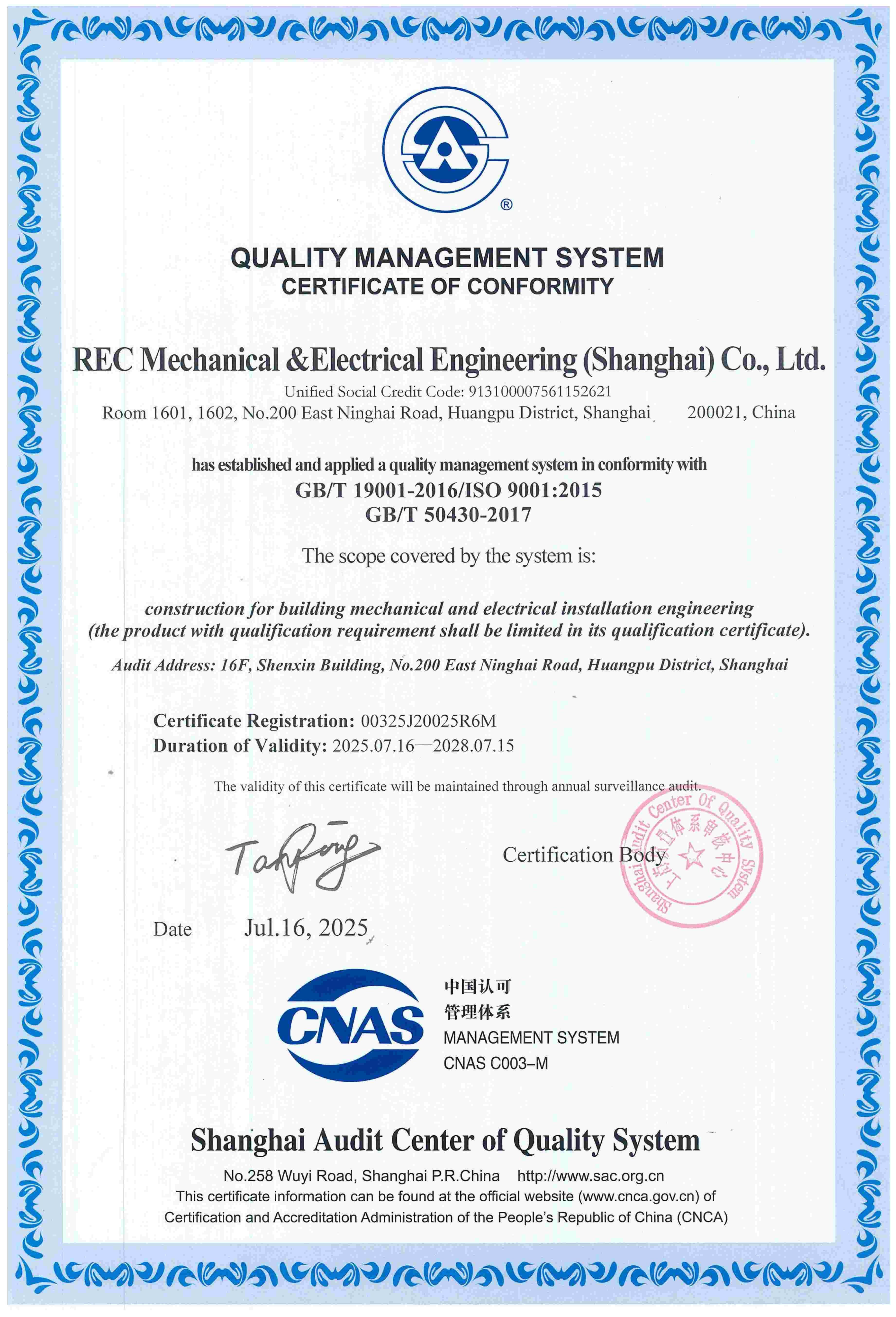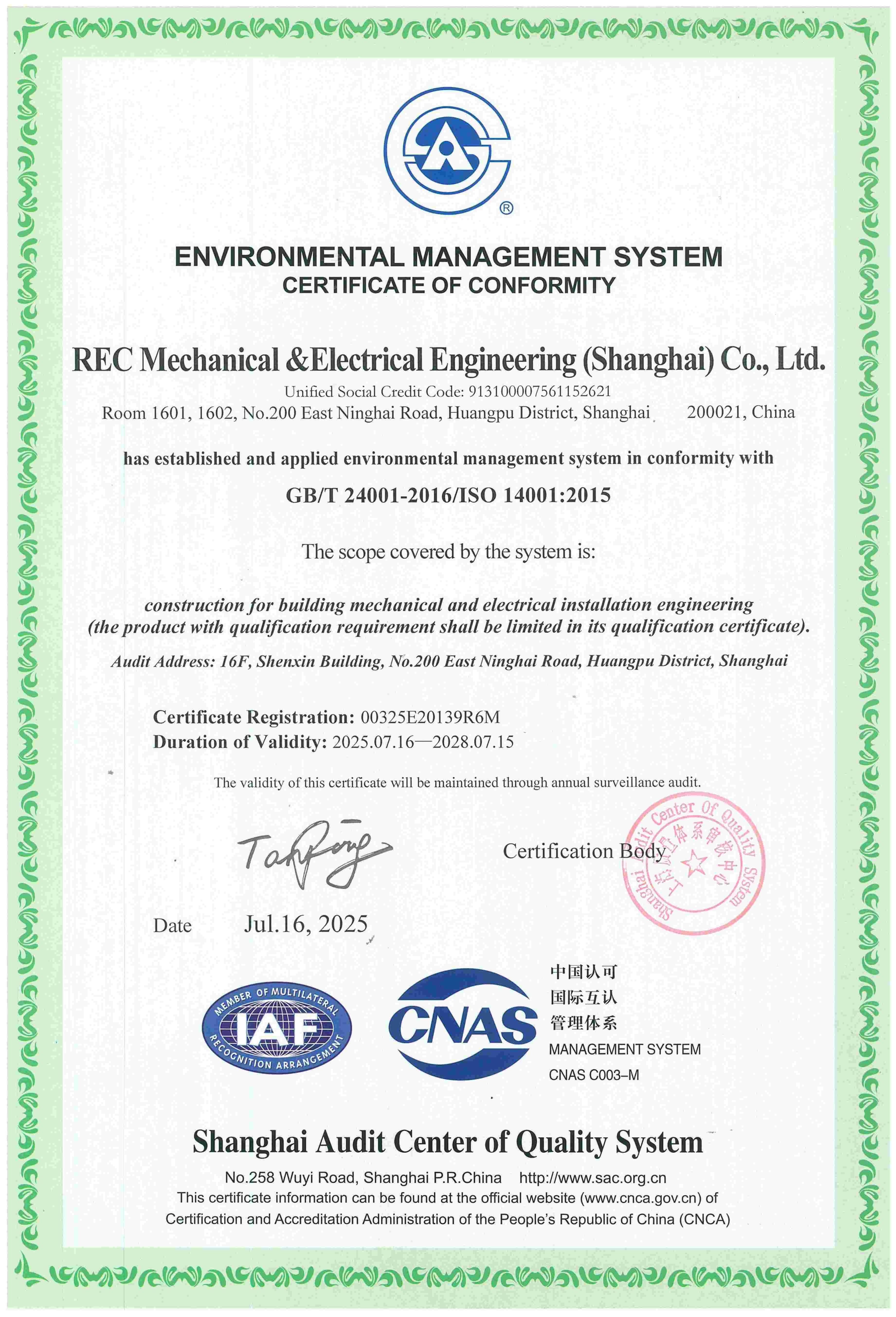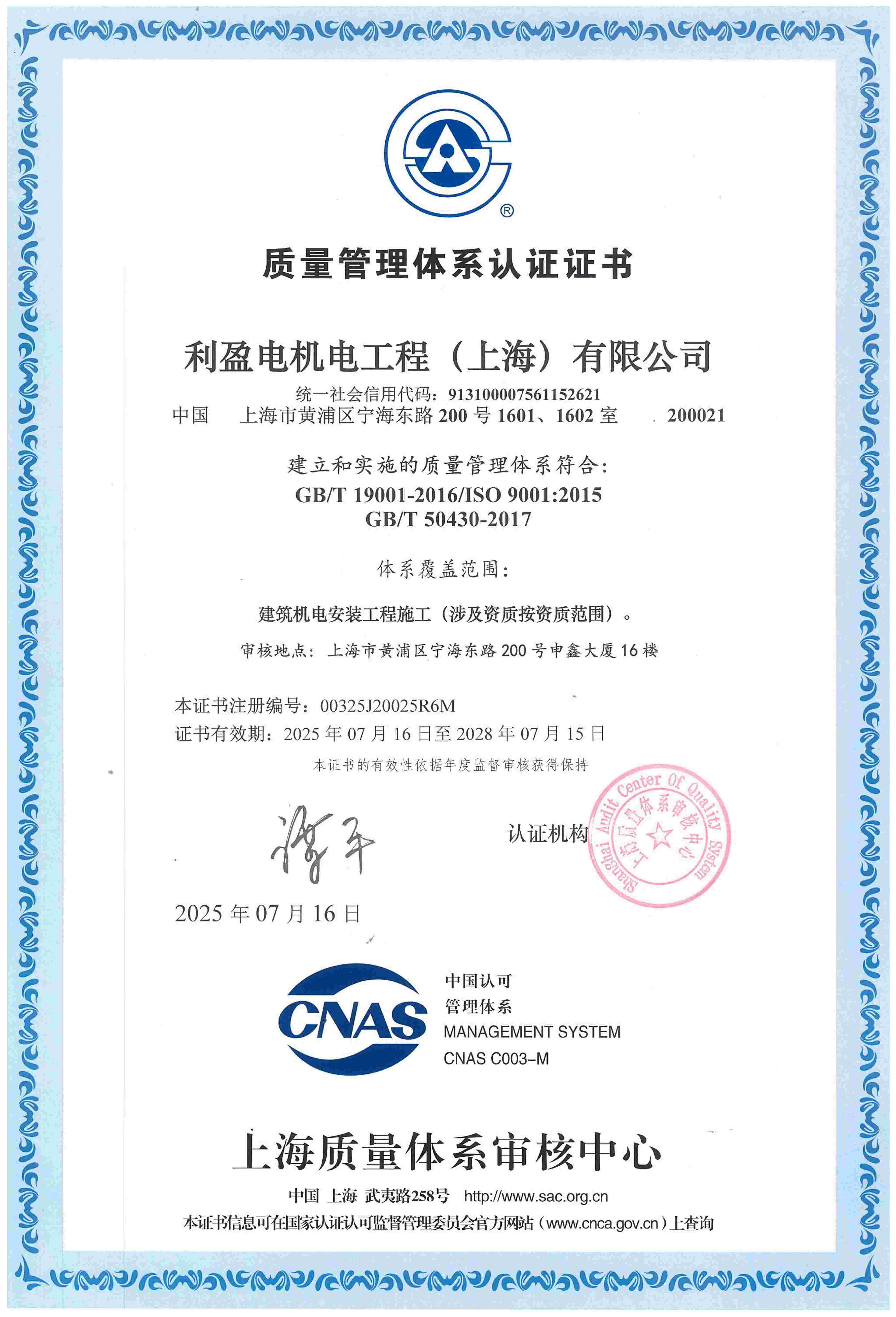 管理体系认证证书